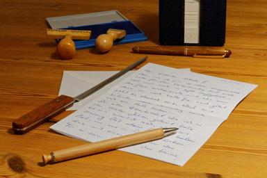 Keywords: letters pen leave paper message writing tool stamp office desk coolie paper knife