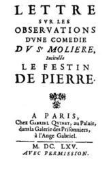 Keywords: Lettre sur les Observations.jpeg Lettre sur les Observations 1665 BNF-Arsenal 1665 author Dom Juan ou le Festin de pierre PD-old-100