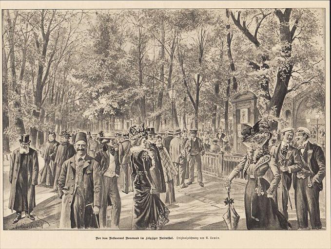 Keywords: Lewin Bonorand.jpg de Vor dem Bonorand im Leipziger Rosental http //www ebay de/itm/1901-Arthur-Lewin-Restaurant-Bonorand-Leipzig-Rostental-grosser-Druck-/170694194227 ebay abgerufen 09 02 2012 Arthur Lewin 1860-1923 1901 Rosental Leipzig Cafés in Leipzig PD-Art