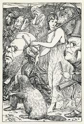 | Keywords: Lewis Carroll - Henry Holiday - Hunting of the Snark - Plate 6.jpg assessments c 2009 1 Lewis Carroll - Henry Holiday - Hunting of the Snark - Plate 1 jpg 1 The Hunting of the Snark Sixth of Henry Holiday's original ilustrations to The Hunting of the Snark by Lewis Carroll This is printed in Fit the Fourth The Hunting but arguably illustrates the start of Fit the Fifth The Beaver's Lesson as they are told to carry out the actions depicted in Fit the Fourth but aren't said to do it until the start of Fit the Fifth In Fit the Fourth the Bellman says 'Tis your glorious duty to seek it the Snark To seek it with thimbles to seek it with care; To pursue it with forks and hope; To threaten its life with a railway-share; To charm it with smiles and soap And at the start of Fit the Fifth They sought it with thimbles they sought it with care; They persued it with forks and hope; They threatened its life with a railway-share; They charmed it with smiles and soap The Hunting of the Snark An Agony in Eight Fits by Lewis Carroll MacMillan and Co Limited St Martin's Street London 1931 Originally 1876 this edition 1931 Henry Holiday 1839-1927 after Lewis Carroll Real name Charles Lutwidge Dodgson 1832-1896 PD-old-auto-1923 1927 For general use Lossless restored version Original scan Cleanup removal of scratches stains and dirt on the scanner bed levels adjustment rotated slightly The Hunting of the Snark The Hunting of the Snark An Agony in Eight Fits 19 26 20 November 2009 UTC The Hunting of the Snark Henry Holiday The Hunting of the Snark Anchors in art |