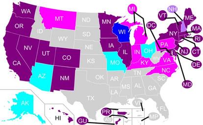 | Keywords: LGBT employment discrimination law in the United States.svg 800080 Sexual orientation and gender identity all employment BA75FF Sexual orientation all employment gender identity only in state employment 0000ff Sexual orientation all employment ff00ff Sexual orientation and gender identity state employment only 00ffff Sexual orientation state employment only cccccc No state-level protection for LGBT employees en US LGBT civil rights August 2008 png + updates Fortuynist November 24 2011 UTC 100px with a proportional Alaska LGBT-related maps of the United States |