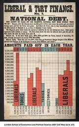 | Keywords: text COLL MISC 0519_075 Three colour lithograph (black, blue, red) produced for the Liberal Central Association, comparing the Liberals record on reducing the National Debt with that of the Conservatives, between 1865 - 1885. Mostly text, with a large graph.\r\nArtist: Unknown\r\nPrinter: National Press Agency Ltd\r\nPublisher: Printer\r\nPlace of Production: London COLL MISC 0519_075 Three colour lithograph (black, blue, red) produced for the Liberal Central Association, comparing the Liberals record on reducing the National Debt with that of the Conservatives, between 1865 - 1885. Mostly text, with a large graph.\r\nArtist: Unknown\r\nPrinter: National Press Agency Ltd\r\nPublisher: Printer\r\nPlace of Production: London |