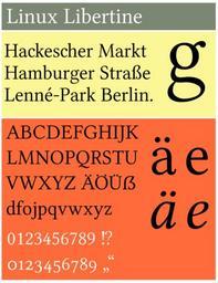 | Keywords: Libertine sample-DE4.svg en Short typographical portrait of the open source font Linux Libertine in German text de Typographisches Kurzportrait der freien Schriftart žLinux Libertine mit deutschem Text own Gillian 2008-07-15 Bild Libertine sample3v svg Gezeigt ist Version 3 0 SVG typeface specimen samples Linux Libertine |
