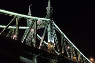 Keywords: liberty bridge danube river freedom bridge historic landmark architecture illumination lights budapest hungary europe famous monument attraction icon night buda pest connection city urban traffic history