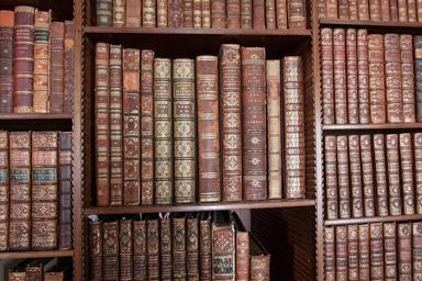 Keywords: library books know historically education old books bookshelf bookcase leather covers gold embossing