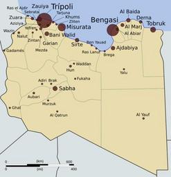| Keywords: Libyan Uprising-es.svg A map of Libya showing Tripoli Benghazi Misurata and Adiri Ajdabiya Al Abyar Al Aziziyah Al Bayda Al Jawf Al Marj Al Qatrun Awbari Az Zawiyah Az Zintan Al Khums Bani Walid Bin Jawad Brega Darnah Hun Ghadames Gharyan Ghat Nalut Ras Lanuf Sabha Sabratha Sirt Tobruk Yafran Zliten Zuwarah Libyan uprising es Libyan_Uprising svg 2011-03-20 17 07 UTC Libyan_Uprising svg Rafy en User Interchange88 2011-02-27 derivative work Ave César Filito <span class signature-talk >talk</span> Other versions/Libyan Uprising transleted to Spanish Ave César Filito Libyan_Uprising svg Cc-zero Original upload log This image is a derivative work of the following images File Libyan_Uprising svg licensed with Cc-zero 2011-03-20T14 28 14Z Zenithfel 690x715 51701 Bytes <nowiki>Reverted to version as of 15 25 18 March 2011</nowiki> 2011-03-20T14 16 17Z Zenithfel 690x715 51701 Bytes <nowiki>Reverted to version as of 15 25 18 March 2011 Benghazi secure same for nalut and yefran</nowiki> 2011-03-19T11 02 25Z Rafy 690x715 51793 Bytes <nowiki>all western mountain vilages to yellow ajdabia to yellow </nowiki> 2011-03-19T08 08 41Z PetarM 690x715 136139 Bytes <nowiki>Bengazi under siege confirmed </nowiki> 2011-03-18T15 25 03Z Nightstallion 690x715 51701 Bytes <nowiki>not really improvements; first change left artifacts second moved all cities upwards incorrectly</nowiki> 2011-03-18T14 54 05Z Yug 969x1018 158346 Bytes <nowiki>clean up codeabout 40 empty items were polluting the code code clarification grouping naming </nowiki> 2011-03-18T14 45 52Z NetRolller 3D 690x715 51636 Bytes <nowiki>Fix font usage - not everyone has an Arial-BoldMT font </nowiki> 2011-03-17T09 58 37Z Rafy 690x715 51701 Bytes <nowiki>Bani Walid to yellow Zintan to yellow </nowiki> 2011-03-16T20 49 32Z PetarM 690x715 66353 Bytes <nowiki>Brega in control of Government troops confirmed by Reuters </nowiki> 2011-03-16T16 37 05Z Rafy 690x715 52010 Bytes <nowiki>Reverted to version as of 12 40 16 March 2011 please check the discription and the discussion before reverting </nowiki> 2011-03-16T16 11 48Z Zenithfel 690x715 51843 Bytes <nowiki>Reverted to version as of 11 00 16 March 2011 no it is not</nowiki> 2011-03-16T12 40 55Z Rafy 690x715 52010 Bytes <nowiki>Bin Walid still loyal to gaddafi</nowiki> 2011-03-16T11 00 02Z Rafy 690x715 51843 Bytes <nowiki>Misrata under attack</nowiki> 2011-03-16T00 19 34Z Rafy 690x715 51842 Bytes <nowiki>Reverted to version as of 21 39 15 March 2011 Check the sources above</nowiki> 2011-03-16T00 04 05Z PetarM 690x715 54472 Bytes <nowiki>Reverted to version as of 19 56 15 March 2011 dont update without sources</nowiki> 2011-03-15T21 39 44Z Rafy 690x715 51842 Bytes <nowiki>update unclear situation in brega and ajdabia </nowiki> 2011-03-15T19 56 59Z PetarM 690x715 54472 Bytes <nowiki>Brega taken by government troops Stated by Reuters BBC AJE confirmed by Rebel general </nowiki> 2011-03-14T23 03 03Z PetarM 690x715 54161 Bytes <nowiki>Zuwarah in control of Loyalists Misrata under Rebel control Brega in yellow situation not clear yet </nowiki> 2011-03-14T22 16 32Z Zenithfel 339x354 41565 Bytes <nowiki>Reverted to version as of 20 30 14 March 2011 http //www telegraph co uk/news/worldnews/africaandindianocean/libya/8381656/Libya-rebels-fear-a-no-fly-zone-will-come-too-late html </nowiki> 2011-03-14T21 39 11Z PetarM 690x715 53897 Bytes <nowiki>Reverted to version as of 18 46 14 March 2011</nowiki> 2011-03-14T21 20 30Z Rafy 690x715 51722 Bytes <nowiki>Reverted to version as of 15 15 14 March 2011 Misrata is under constant attack as government troops occupy it's outskirts </nowiki> 2011-03-14T20 30 38Z Zenithfel 339x354 41565 Bytes <nowiki>Reverted to version as of 12 54 14 March 2011 no attack on Misurata http //www telegraph co uk/news/worldnews/africaandindianocean/libya/8381656/Libya-rebels-fear-a-no-fly-zone-will-come-too-late html Zuara rebels still pre</nowiki> 2011-03-14T18 46 51Z PetarM 690x715 53897 Bytes <nowiki>Zuwarah taken by Loyalists Reported by Reuters </nowiki> 2011-03-14T18 46 44Z PetarM 690x715 53897 Bytes <nowiki>Zuwarah taken by Loylists Reported by Reuters </nowiki> 2011-03-14T15 15 06Z Rafy 690x715 51722 Bytes <nowiki>Misrata and Zuara are under attack Conflicting reports coming from Brega Gharyan has been under Gaddafi's control </nowiki> 2011-03-14T13 49 32Z War dog 339x354 38936 Bytes <nowiki>Bombing on Ajdabiya http //notizie tiscali it/feeds/11/03/14/t_02_20110314_000058 html </nowiki> 2011-03-14T12 54 27Z PetarM 339x354 41565 Bytes <nowiki>Loyalist troops entered in battle for Zuwarah confirmed deaths satated by Rebel media ---> Zuwarah in yellow</nowiki> 2011-03-14T10 25 02Z Nightstallion 680x710 50532 Bytes <nowiki>differing claims about Brega again yellow for now</nowiki> 2011-03-14T00 24 45Z Giornorosso 680x710 50575 Bytes <nowiki>Not only source saying this Brega has been retaken Long live Gaddafi </nowiki> 2011-03-13T20 33 29Z Rafy 680x710 50532 Bytes <nowiki>doubled dimensions </nowiki> 2011-03-13T19 29 03Z AlwaysUnite 339x354 41246 Bytes <nowiki>Reverted to version as of 17 04 13 March 2011 no apparent change in brega except what state tv says NOT a credible source</nowiki> 2011-03-13T18 58 56Z Giornorosso 339x354 41432 Bytes <nowiki>Brega taken see e g http //au news yahoo com/world/a/-/world/9003208/gaddafis-troops-capture-oil-town-of-brega/ Long live Gaddafi </nowiki> 2011-03-13T17 04 11Z Zenithfel 339x354 41246 Bytes <nowiki>Reverted to version as of 11 52 13 March 2011 No attack on Misurata yet</nowiki> 2011-03-13T15 56 16Z Rafy 677x708 41868 Bytes <nowiki>double the dimension updates </nowiki> 2011-03-13T11 52 10Z PetarM 339x354 41246 Bytes <nowiki>Update March 13th Brega under siege and rebels pulling outhttp //www libyafeb17 com/ or under government control as stated by other source Yellow for now till more sources about Brega come out by day </nowiki> 2011-03-12T20 54 47Z Giornorosso 339x354 38778 Bytes <nowiki>Ras Lanuf has been definitively recaptured Long
