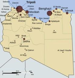| Keywords: Libyan Uprising-fr.svg Carte représentant la guerre civile libyenne de 2011 au 20 octobre 2011 avec entre autres les villes de Tripoli Benghazi et Misrâtah <br /> La taille des cercles correspond à la population des villes Libyan uprising fr Libyan_Uprising svg Libyan_Uprising svg Rafy en Interchange88 Derivative work Pilkarz <span class signature-talk >talk</span> 00 34 6 March 2011 UTC 2011-03-06 Other versions/Libyan Uprising Traduction en français Simply Translated into French Pilkarz Libyan_Uprising svg Cc-zero Original upload log This image is a derivative work of the following images File Libyan_Uprising svg licensed with Cc-zero 2011-03-02T22 29 03Z Rafy 339x354 38414 Bytes <nowiki>oops</nowiki> 2011-03-02T22 11 41Z Rafy 339x354 35936 Bytes <nowiki>uploaded wrong one</nowiki> 2011-03-02T22 10 02Z Rafy 339x354 35936 Bytes <nowiki>More accurate city scales Updates </nowiki> 2011-03-02T20 57 26Z Magog the Ogre 339x354 36812 Bytes <nowiki> Brega Adjabiya and Bani Walid per the talk page</nowiki> 2011-03-02T11 12 39Z Rafy 339x354 35936 Bytes <nowiki>Colour tweaks Gharyan Sebrata Brega and Ajdabia under attack</nowiki> 2011-03-02T10 32 38Z Transparent 6lue 339x354 32868 Bytes <nowiki>Reverted to version as of 19 39 1 March 2011 it's called Tripoli </nowiki> 2011-03-02T10 18 48Z Giornorosso 339x354 32861 Bytes <nowiki>Ajdabiya contested</nowiki> 2011-03-02T10 17 00Z Giornorosso 339x354 32861 Bytes <nowiki>Gharyan captured by Ghaddafi</nowiki> 2011-03-01T19 39 14Z U5K0 339x354 32868 Bytes <nowiki>misrata in rebbel hands still </nowiki> 2011-03-01T19 28 17Z U5K0 339x354 32810 Bytes <nowiki>zawiya in rebel hands after repelling attacks</nowiki> 2011-03-01T12 21 03Z Rafy 339x354 32406 Bytes <nowiki>Black border makes light green more visible over a grey background </nowiki> 2011-03-01T12 04 56Z Rafy 339x354 31875 Bytes <nowiki>corrected position of khums and zliten added a better green as per discussion added grey border do distinguish overlapping cities aziziya and tripoli for example </nowiki> 2011-03-01T07 38 13Z Magog the Ogre 339x354 34210 Bytes <nowiki> kill red border per complaint on talk page</nowiki> 2011-03-01T03 51 03Z Rafy 339x354 33791 Bytes <nowiki>colours improve scales based on http //www world-gazetteer com/wg php x 1298950805 men glay lng en des gamelan geo -133 srt dpnn col abcdefghimoq msz 1500 this source</nowiki> 2011-03-01T03 20 06Z JasonAQuest 339x354 27052 Bytes <nowiki>restore city sizes</nowiki> 2011-03-01T02 26 10Z Rafy 339x354 31644 Bytes <nowiki>Tripoli to green and and Misrata and Zawia to yellow</nowiki> 2011-03-01T02 16 10Z Rafy 339x354 32189 Bytes <nowiki>Colourblind friendly updated situation Ghadamis and Bani Walid were never under opposition control </nowiki> 2011-02-28T20 46 05Z Gryffindor 339x354 28395 Bytes <nowiki>the large dots make reading the city names difficult also some are too small</nowiki> 2011-02-28T19 30 49Z Interchange88 339x354 27375 Bytes <nowiki>Reverted to version as of 03 36 28 February 2011 drive-by edit no reasons no discussion</nowiki> 2011-02-28T15 13 46Z Gryffindor 339x354 28395 Bytes <nowiki>Reverted to version as of 20 15 27 February 2011</nowiki> 2011-02-28T03 36 14Z JasonAQuest 339x354 27375 Bytes <nowiki>scale cities according to size</nowiki> 2011-02-27T20 15 42Z JasonAQuest 339x354 28395 Bytes <nowiki>neutral background</nowiki> 2011-02-27T17 36 21Z Rafy 339x354 54770 Bytes <nowiki>Using one colour for the map as per discussion</nowiki> 2011-02-27T17 06 02Z Rafy 339x354 54768 Bytes <nowiki>Colour tweaks Al Aziziya still controlled by Gaddafi </nowiki> 2011-02-27T14 48 05Z U5K0 338x354 57558 Bytes <nowiki>Al Zawiya liberated as per BBC Al Jazeera see article talk page </nowiki> 2011-02-27T14 22 17Z Rafy 338x354 56608 Bytes <nowiki>Bigger bullets</nowiki> 2011-02-27T11 00 26Z Rafy 387x354 58251 Bytes <nowiki>tweaks</nowiki> 2011-02-27T01 56 45Z Rafy 387x354 66921 Bytes <nowiki>corrections</nowiki> 2011-02-27T01 50 06Z Rafy 387x354 133950 Bytes <nowiki>saved as plain</nowiki> 2011-02-27T01 47 44Z Rafy 387x354 154560 Bytes <nowiki> en Situation as of 26/2/2011 own Rafy 2011-02-27 Libyan uprising</nowiki> Uploaded with derivativeFX Maps of the 2011 Libyan civil war |