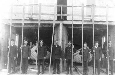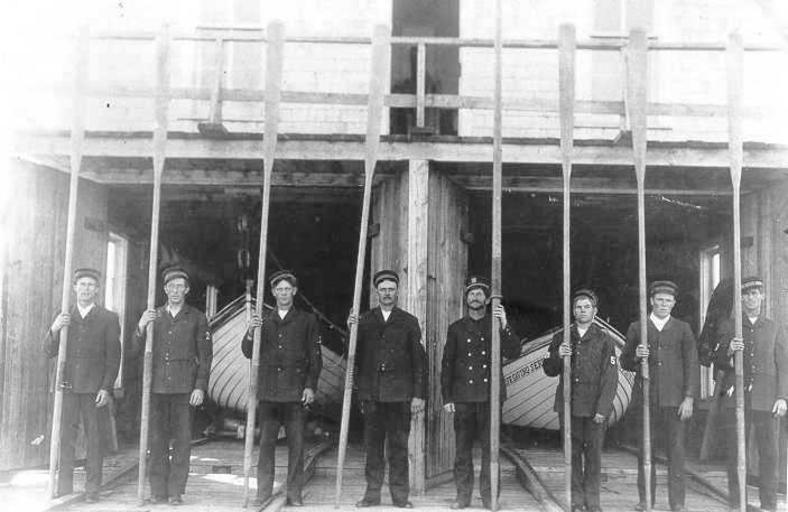 | Keywords: Life saving station crew 02.jpg en Crew of a U S Life-Saving Service station wearing standard uniforms unknown date and location http //www uscg mil/history/uscghist/USLSS_Uniform_Index asp U S Coast Guard Historian's office Author Federal government PD unknown United States Life-Saving Service United States Life-Saving Service oar-powered surfboats PD-USGov |