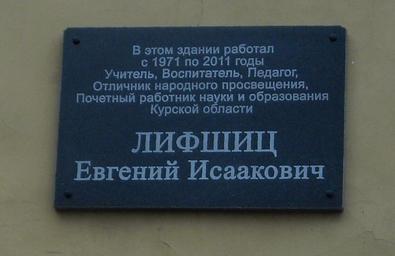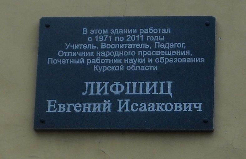 | Keywords: Lifshits plaque.JPG ru емо иальная доска Лившицу Е И на стене Вет оэлект останции Уфимцева г Ку ск В этом здании аботал с 1971 по 2011 годы учитель воспитатель педагог Отличник на одного п освещения Почетный аботник науки и об азования Ку ской области Лифшиц Евгений Исаакович en Commemorative plaque to E I Lifshits on wall of Ufimcev wind power station in Kursk 2013-03-29 14 31 45 own Radioaktive other versions cc-zero Uploaded with UploadWizard Monuments and memorials in Kursk Semyonovskaya Street Kursk |