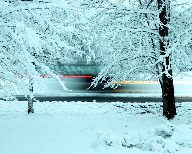 Keywords: light beams headlights tail lights rays speeding car blur winter