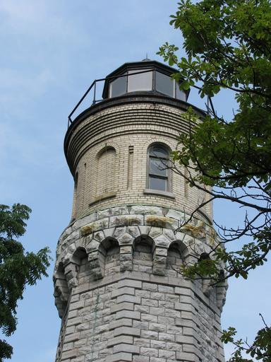 Keywords: light house lighthouse beacon navigation coastline landmark marine nautical safety signal warning fort niagara niagara falls structure building high trees guide