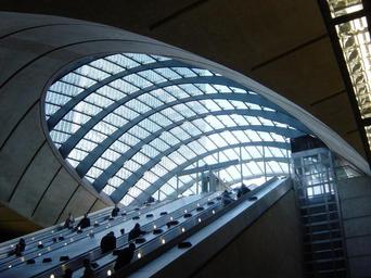 Keywords: light rail station london canary wharf tube skylight escalator metro metro rail mass transit people mover rail transportation track commute people mover transport train urban city passenger subway