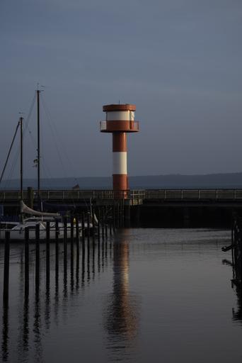 Keywords: lighthouse eckernförde daymark harbour entrance jetty signal port baltic sea sea water anchorage still twilight evening architecture