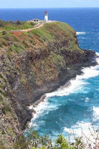 Keywords: lighthouse headland hawaii kauai island cliffs