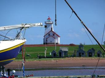 Keywords: lighthouse light beacon flashing navigation aid coastline landmark maritime nautical guidance prince edward island building canada