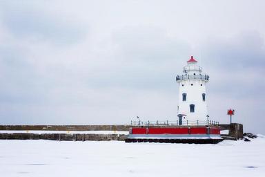 Keywords: lighthouse michigan white nautical winter snowy snow historic