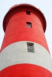 Keywords: lighthouse nautical beacon red white tall light warning clouds sky landmark