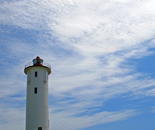 Keywords: lighthouse nautical beacon white tall light warning clouds sky landmark