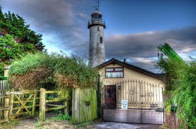 Keywords: lighthouse navigation beacon beam maritime signal harbor marine tower safety nautical guidance navigate seashore coastal sky clouds hale cheshire england