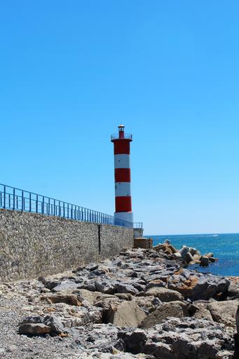 Keywords: lighthouse red lighthouse sea dam reefs electric headlight