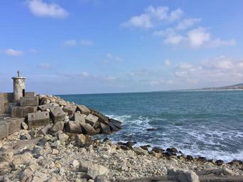 Keywords: lighthouse rocks seashore sea coastline cliff waves rocky blue outdoors seascape marine