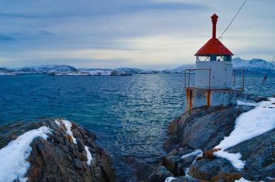 Keywords: lighthouse sea water rock blue norway sky mountains nature clouds landscape scandinavia fjord norge mood snow cold winter wintry light