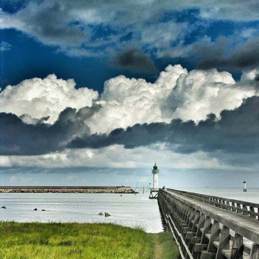 Keywords: lighthouse sky blue clouds water beach tower sea web fish anlegstelle wave pier port jetty drama lake waters dramatic forward