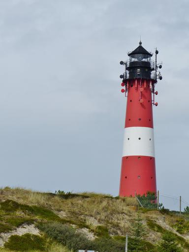 Keywords: lighthouse sylt coast red white building striped tower holiday