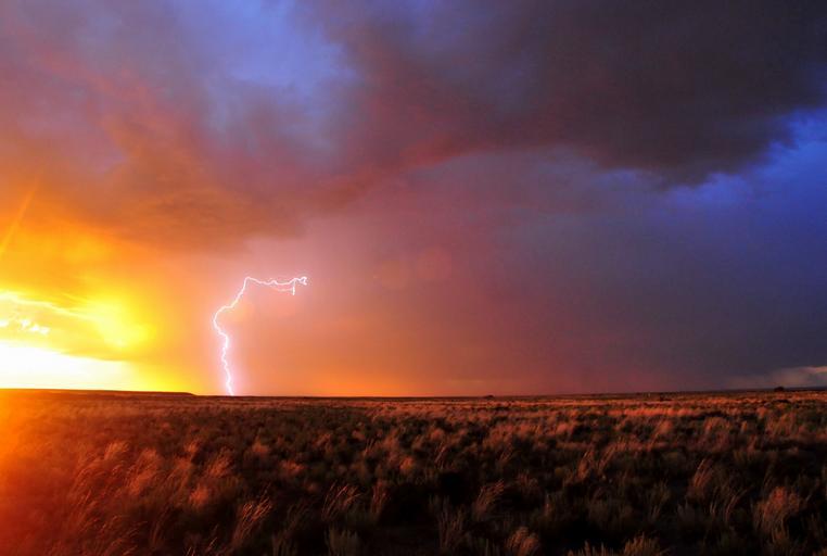 Keywords: lightning storm sky weather landscape bolt cloud dark thunderstorm scenic nature rain flash electric prairie striking sun