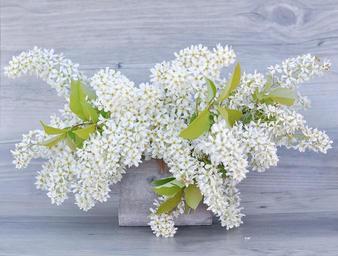 Keywords: lilac flowers white flowering twig lilac branches branches white flowers lilac blossom branch spring deco decoration close still life fragrant