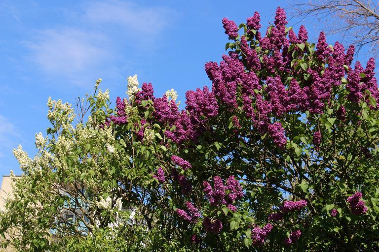 Keywords: lilac purple white green sky clouds white lilac garden tree trees nature flowers landscape summer summer day
