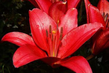 Keywords: lily blossom bloom red close bloom macro blossomed contrast pollen colorful