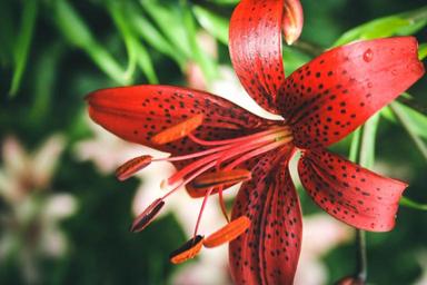 Keywords: lily flower dacha beautiful flower nature summer garden flower bed lily closeup red stamens macro photography botanical garden garden flower flowers summer flowers