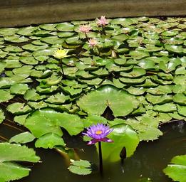 Keywords: lily flower purple yellow peach pond aquatic plant flora water nature bloom tropical blossom botanical oriental botany dharwad karnataka india
