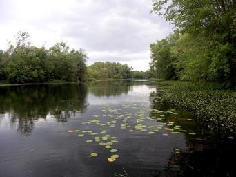 Keywords: lily pads river still water stream nature trees