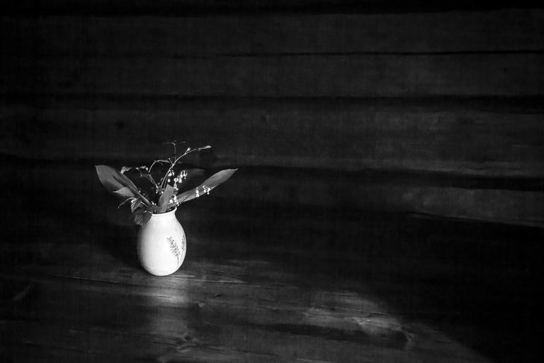 Keywords: lily of the valley black and white romantic bouquet green garden nature lily-of-the-valley plant flower vase flora forest fragile gift outdoors one nobody lonely meadow funeral sorrow sadness darkness dark lily black card funeral card