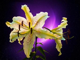 Keywords: lily white purple dots blossom bloom flower