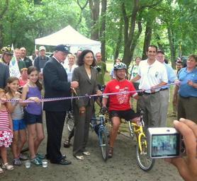| Keywords: Lincoln Pk ECGW ribbon cutting jeh.jpg en Looking east as Jerramiah Healy Mayor of Jersey City cuts ribbon for bikeway to Newark on a hazy morning Myron Skott and his wife Cathy whose bike can be seen on their way from Florida to Maine look on as do officials children and other people 2012-06-22 own Jim henderson 40 7253 -74 0920 heading SE cc-zero Uploaded with UploadWizard Recumbent bicycles Ribbon-cutting ceremonies in the United States East Coast Greenway Parks in New Jersey People from Jersey City New Jersey |