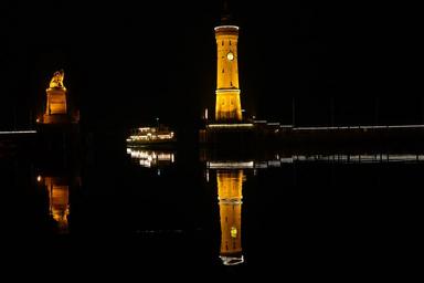 | Keywords: lindau port lighthouse bavarian lion lake constance lake water allgäu bavaria night illuminated germany historically island swabia holiday tourism places of interest beacon architecture landmark tower building bank night mood idyllic romantic shipping holiday destination promenade mood evening lighting reflection mirroring night photograph harbour entrance new lighthouse seaport |