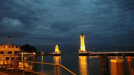Keywords: lindau port lighthouse night illuminated idyllic landmark tower beacon lake constance atmosphere
