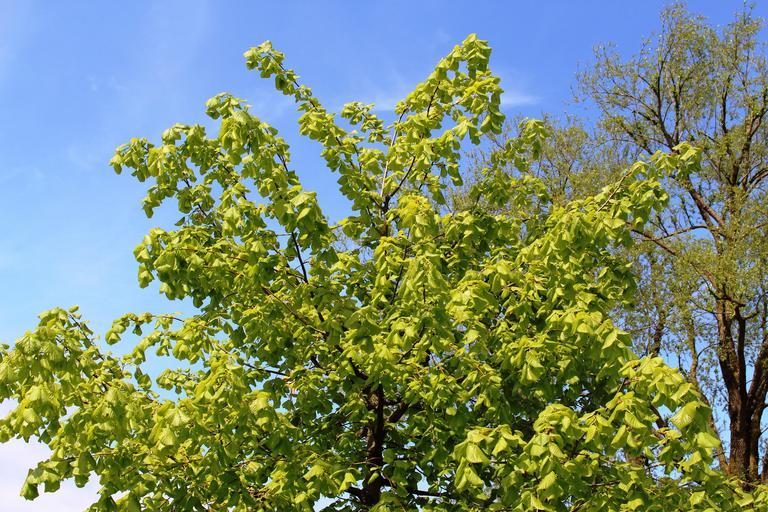 Keywords: linde tree peace linde foliage sky blue spring