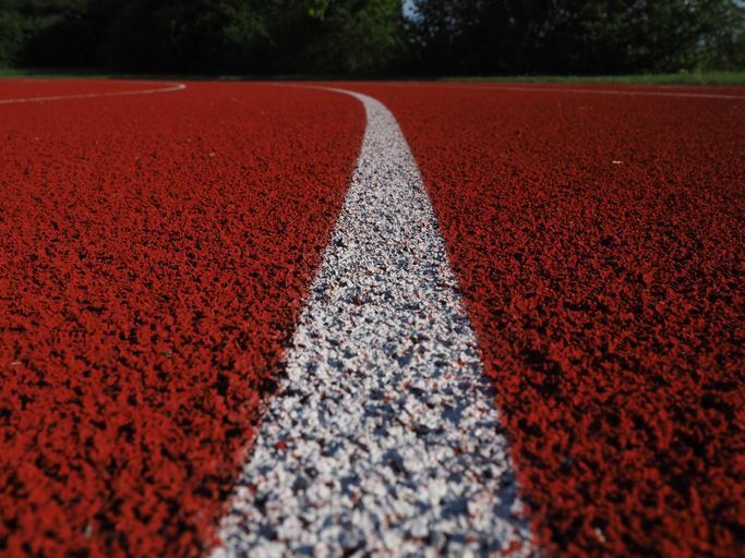 Keywords: line mark stripes white tartan track career runway athletics run race sport sports track fitness sports ground competition trace curve racecourse stadium tartan stadium round round red leisure