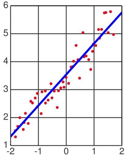 | Keywords: Linear least squares.svg Illustration of linear least squares self-made with MATLAB tweaked in Inkscape 19 15 2 February 2008 UTC Oleg Alexandrov Created with MATLAB Source code MATLAB <source lang matlab > Illustration of linear least squares function main KSmrq's colors red 0 867 0 06 0 14; blue 0 129 205/256; green 0 200 70/256; yellow 254 194 0/256; white 0 99 1 1 1; gray 0 2 white; Set up the grid and other parameters N 100; A -2 2; B 2; X linspace A B N ; C -4; D 4; Set up the figure lw 4; linewidth fs 18; font size figure 1 ; clf; hold on; set gca 'fontsize' fs ; set gca 'linewidth' lw/2 5 hold on; grid on; random numbers a 1 1; b 3 5; c 1 4; M 50; XX linspace A+0 3 B-0 3 M+1 ; Xr 0 1 M ; Yr Xr; for i 1 M r rand 1 ; Xr i XX i r+XX i+1 1-r ; Yr i a Xr i + b + c 0 4 erfinv 2 rand 1 - 1 ; end myrad 0 05; for i 1 length Xr ball Xr i Yr i myrad red ; end least squares fitting Yr Yr'; Mat Xr' 0 Xr+1 '; V Mat' Yr; V Mat' Mat \V; ae V 1 ; be V 2 ; plot X ae X+be 'b' 'linewidth' lw ; grid on; set gca 'GridLineStyle' '-' 'xcolor' gray ; set gca 'GridLineStyle' '-' 'ycolor' gray ; set gca 'XTick' -2 -1 0 1 2 ; axis equal; axis -2 2 1 6 ; saveas gcf 'Linear_least_squares eps' 'psc2' ; save as eps plot2svg 'Linear_least_squares svg' ; save as svg function ball x y r color Theta 0 0 1 2 pi; X r cos Theta +x; Y r sin Theta +y; H fill X Y color ; set H 'EdgeColor' 'none' ; </source> en wikipedia Linear_regression it wikipedia Minimi_Quadrati Control theory linear regression Images with Matlab source code |