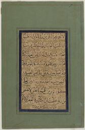 | Keywords: Lines from “Qaṣīdat al-burdah” (the Poem of the Mantle) WDL6837.png Artwork ru Ши ази Вассали уме в 1846 г fr Shirazi Vassal-i mort en 1846 en Shirazi Vassal-i died 1846 zh 瓦萨尔·设拉子,卒于 1846 年 pt Shirazi Vassal-i falecido em 1846 ar الشيرازي، وصال، توفي 1846 es Shirazi Vassal-i fallecido en 1846 ru Ст оки из Касыды аль-Бу да Поэмы антии fr Vers extraits de « Qaṣīdat al-burdah » Le poème du manteau en Lines from Qaṣīdat al-burdah the Poem of the Mantle zh 节自 披风之诗 的诗句 pt Frases de Qaṣīdat al-burdah O poema do manto ar أبيات من البُردة ru Данный ф агмент соде жит стихотво ение на а абском языке написанное письмом насх че ными че нилами на бумаге бежевого цвета Слова стихотво ения соде жащие п оставленные че ными че нилами символы всех гласных звуков об амлены облакооб азными полосами на золотистом фоне Ст аница с текстом заключена в синюю амку и наклеена на зеленый лист бумаги большего азме а с ка тонной основой а последней ст оке каллиг аф по имени Вассал указал что он выполнил эту аботу вече ом в понедельник в 1842 году / в 1258 году хидж ы Установлено что это был знаменитый Вассали Ши ази уме в 1846 году / в 1262 году хидж ы величайший и анский каллиг аф XIX века воз одивший т адиции письма в стиле насх Судя по всему он выполнил данную аботу всего лишь за четы е года до своей сме ти <br>А абская каллиг афия; А абские укописи; А абская поэзия; Иллюмини ование укописей; Поэзия fr Ce fragment comprend un poème en arabe en écriture naskh noire sur du papier beige Les mots sont totalement vocalisés en noir et encadrés de bandes de nuages sur fond doré Le panneau de texte est encadré de bleu et collé sur une feuille plus grande de papier vert renforcé par du carton Sur la dernière ligne le calligraphe Vassal déclare qu'il a rédigé ce document un lundi soir de l'an 1258 après l'Hégire/1842 après J -C Le calligraphe peut être identifié comme étant Vassazl-i-Shirazi mort en 1262 après l'Hégire/1846 après J -C célèbre pour le renouveau du naskh et le plus grand calligraphe iranien du XIX<sup>e</sup> siècle Il semble avoir exécuté ce fragment seulement quatre ans avant sa mort <br>Calligraphie arabe; Manuscrits arabes; Poésie arabe; Enluminures; Poésie en This fragment includes a poem in Arabic written in black Naskh script on a beige paper The words are fully vocalized in black and framed by cloud bands on a gold background The text panel is framed in blue and pasted to a larger sheet of green paper backed by cardboard On the final line the calligrapher Vassal states that he has written the work on a Monday night during the year 1258 AH/1842 The calligrapher can be identified as the famous Naskh-revivalist Vassal-i Shirazi died 1262 AH/1846 the greatest Iranian calligrapher of the 19th century He seems to have executed this piece only four years before his death <br>Arabic calligraphy; Arabic manuscripts; Arabic poetry; Illuminations; Poetry zh 该残卷包括 首阿拉伯语诗,以黑色纳斯赫体写 张米色纸上 这些词以黑色墨水书写并都被加上元音,字体周围是带状云彩图案,背景是金色 字幅 色边框,并粘贴到 张更大的绿色纸张上,背衬 纸 后 行,书法家瓦萨尔 Vassal 指出,他是 伊斯兰历 1258 年/公元 1842 年 个周 的 晚完成的这幅 品 此书法家可以确定是著名的纳斯赫-复古主义 瓦萨尔·设拉子(Vassal-i Shirazi,卒于伊斯兰历 1262 年/公元 1846 年),他是 19 世纪 伟大的伊 书法家 这幅 品似乎是 他去世前四年才完成 <br>阿拉伯文书法; 阿拉伯语手稿; 阿拉伯语诗歌; 插图; 诗歌 pt Este fragmento inclui um poema em árabe escrito em caligrafia naskh na cor preta em papel bege As palavras são acompanhadas por sinais vocálicos em preto e estão emolduradas por mosaicos de nuvens em um plano de fundo dourado O painel de texto está emoldurado em azul e colado em uma folha maior de papel verde sustentada por cartão Na linha final o calígrafo Vassal afirma que escreveu a obra em uma segunda-feira à noite durante o ano de 1258 a H /1842 O calígrafo pode ser identificado como o famoso revivalista do estilo naskh Vassal-i Shirazi falecido em 1262 a H /1846 o maior dos calígrafos iranianos do século XIX Ele parece ter realizado esta obra apenas quatro anos antes de sua morte <br>Caligrafia árabe; Manuscritos árabes; Poesia árabe; Iluminuras; Poesia ar تشتمل هذه القطعة على أبيات من البُردة مكتوبة بخط النسخ الأسود على ورقة باللون البيج الكلمات مُشكلة تماماً باللون الأسود، ومحاطة بأشرطة على هيئة سحاب على خلفية ذهبية اللوحة النصية مُحاطة بإطار أزرق اللون، وملصقة على صحيفة ورقية خضراء اللون أكبر حجماً، مُعززة بورق مقوى في السطر الأخير، يقول الخطاط وصال أنه كتب هذا العمل في مساء يوم الاثنين من عام 1258 ه /1842 يمكن القول أن الخطاط هو وصال الشيرازي توفي عام 1262 ه /1846 ، وهو خطاط مشهور أحيا خط النسخ، و
