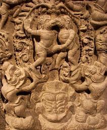 | Keywords: Linteau Ramayana Musée Guimet 9974.jpg Linteau représentant un épisode du Ramayana ici le combat des singes Valin et Sugriva Cambodge province de Battambang Vat Baset style du Baphuon 11ème siècle Grès Musée Guimet Paris Own 2007-09-30 Vassil Art of Cambodia in the Musée Guimet Sculptures from Cambodia Vat Baset Death of Vali |