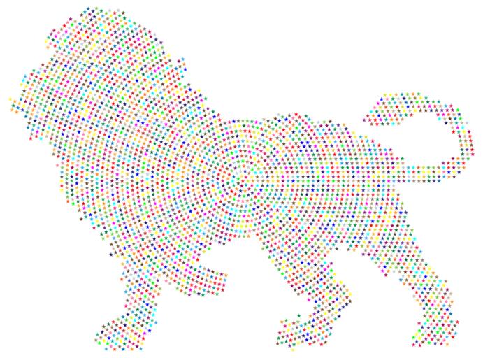 Keywords: lion animal big cat feline king of the jungle wild africa stars colorful prismatic rainbow abstract geometric art