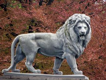 Keywords: lion animal tree leaves colours nature sculpture belgium brussels capital city photographic image journey memory monument