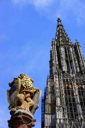Keywords: lion fountain fountain cathedral square ulmer münster building architecture steeple fig lion ulmer muenster space ulm double lion
