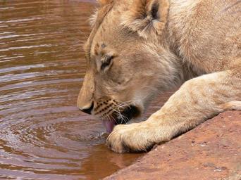 Keywords: lion lioness big cat drinking animal wildlife wild zoology mammal species wilderness environment outdoors nature