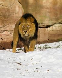 Keywords: lion predator cat male zoo nuremberg mane winter close animal cold snow